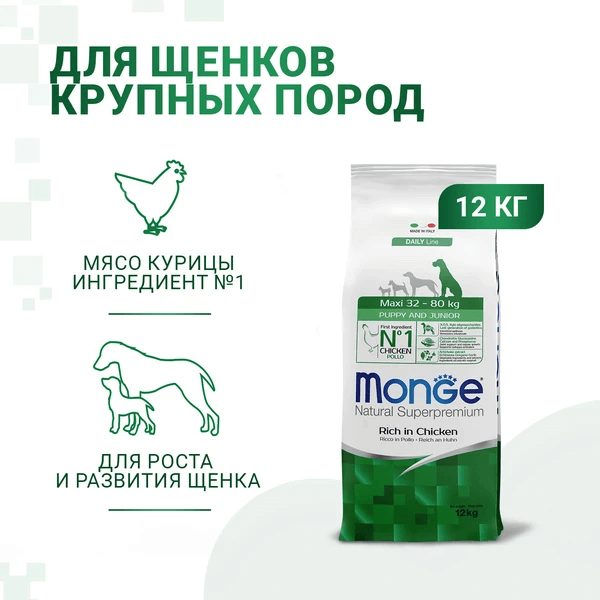 Monge (Монж) Dog Daily Line Puppy & Junior Maxi сухой корм из мяса курицы для щенков крупных пород.